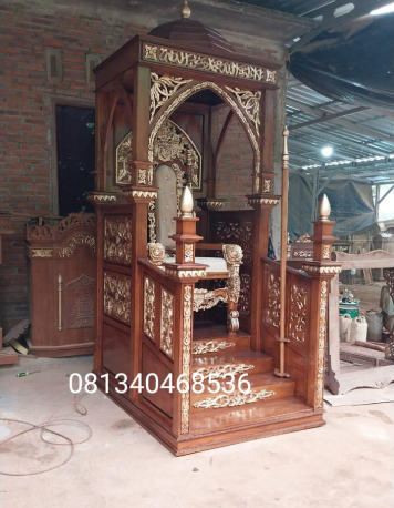 Mimbar Masjid Pintu Depan Mewah dengan Kursi Raja 110x150x300cm